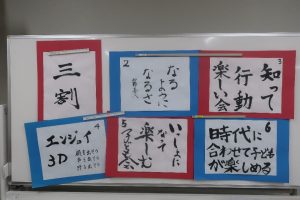 話し合いの内容をもとに、新しい子ども会づくりに向けたスローガンを揮毫しました。