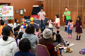 午前は楽しい読み聞かせ会です。石原ひとみ先生による「ペープサート」。関稚子先生による「パネルシアター」。大島靖史先生による「うた遊び」。羽藤雄次先生・小林もと果先生による「紙芝居」「絵本」「素話」。沢山のお話に子どもたちは大いに楽しみ盛り上がり、あっという間の2時間を過ごしました。