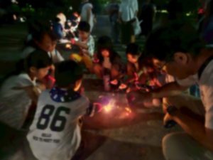 夏だ!そうだ、花火をしよう! というわけで、みんなで手持ち花火をしました。 事前に用意した400本以上の花火があっという間になくなるくらい、みんな楽しんでくれました。
