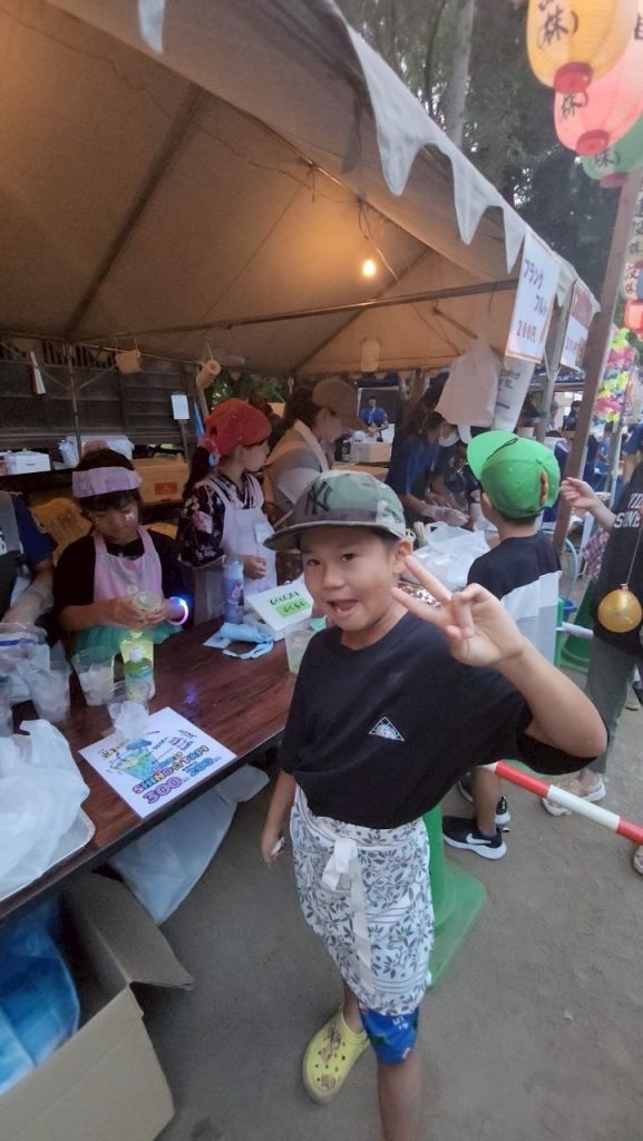 7月20日21日の2日間浅間神社で行われる盆踊りでの出店!2日間は大変だけどお店の販売体験はなかなかできないから楽しいです! 子ども達は飲み物やかき氷!今年は光氷にゼリーが入った「しのたっぴ」が大バズり!