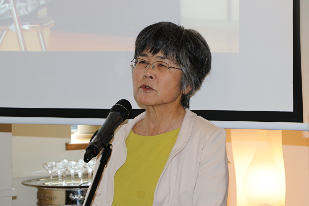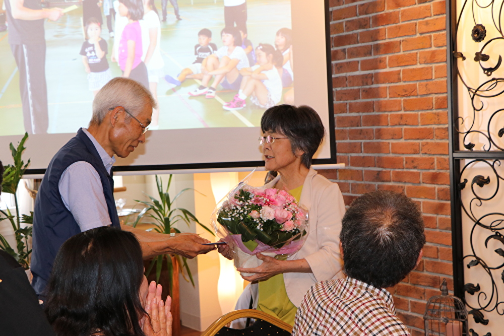 武田 副会長より花束を受け取る松尾 眞壽美さん