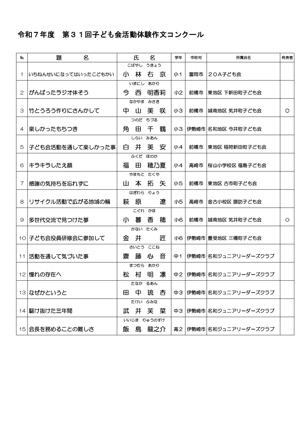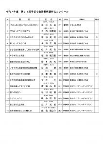 〇第31回子ども会活動体験作文コンクール優秀賞表彰