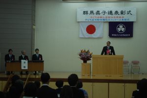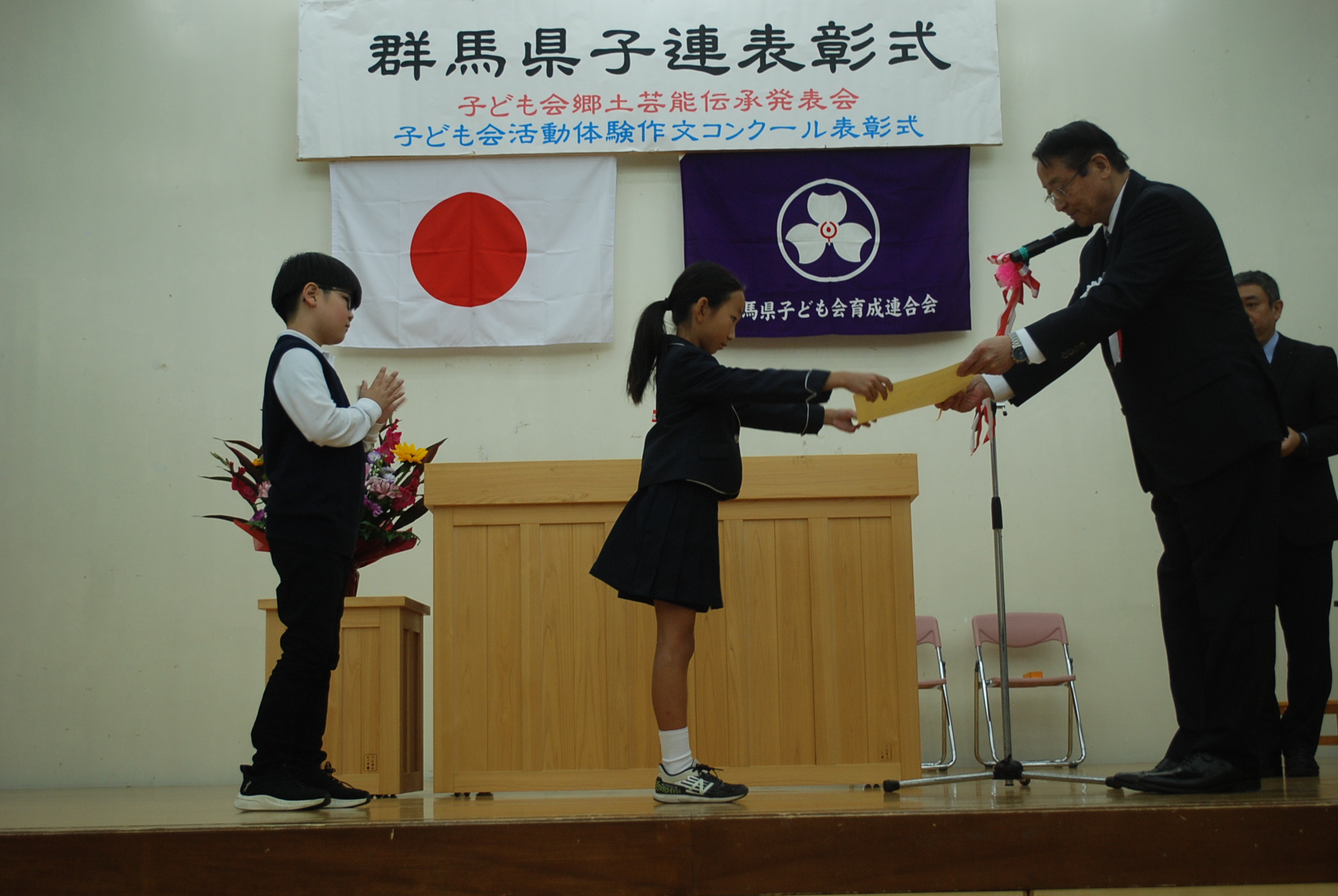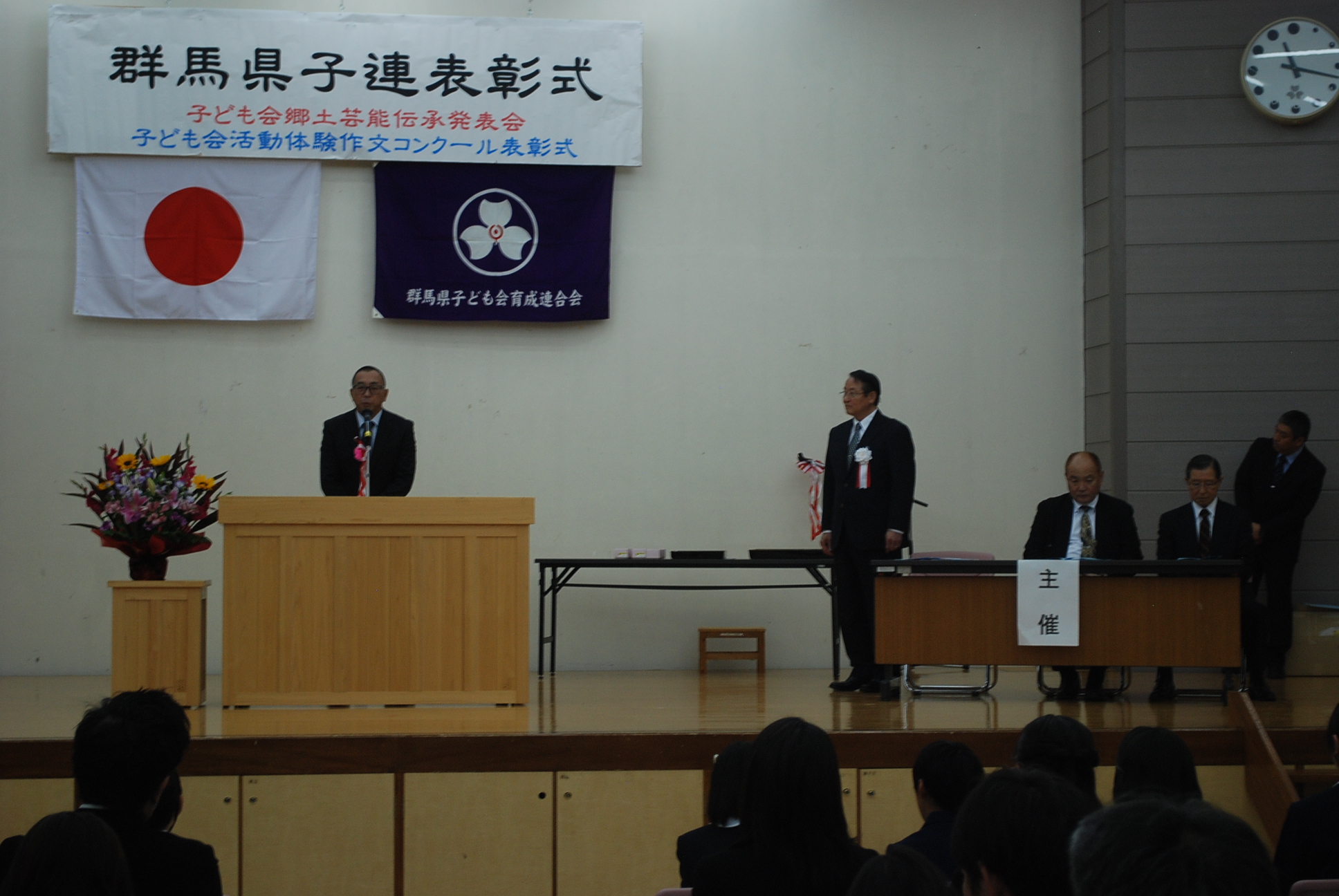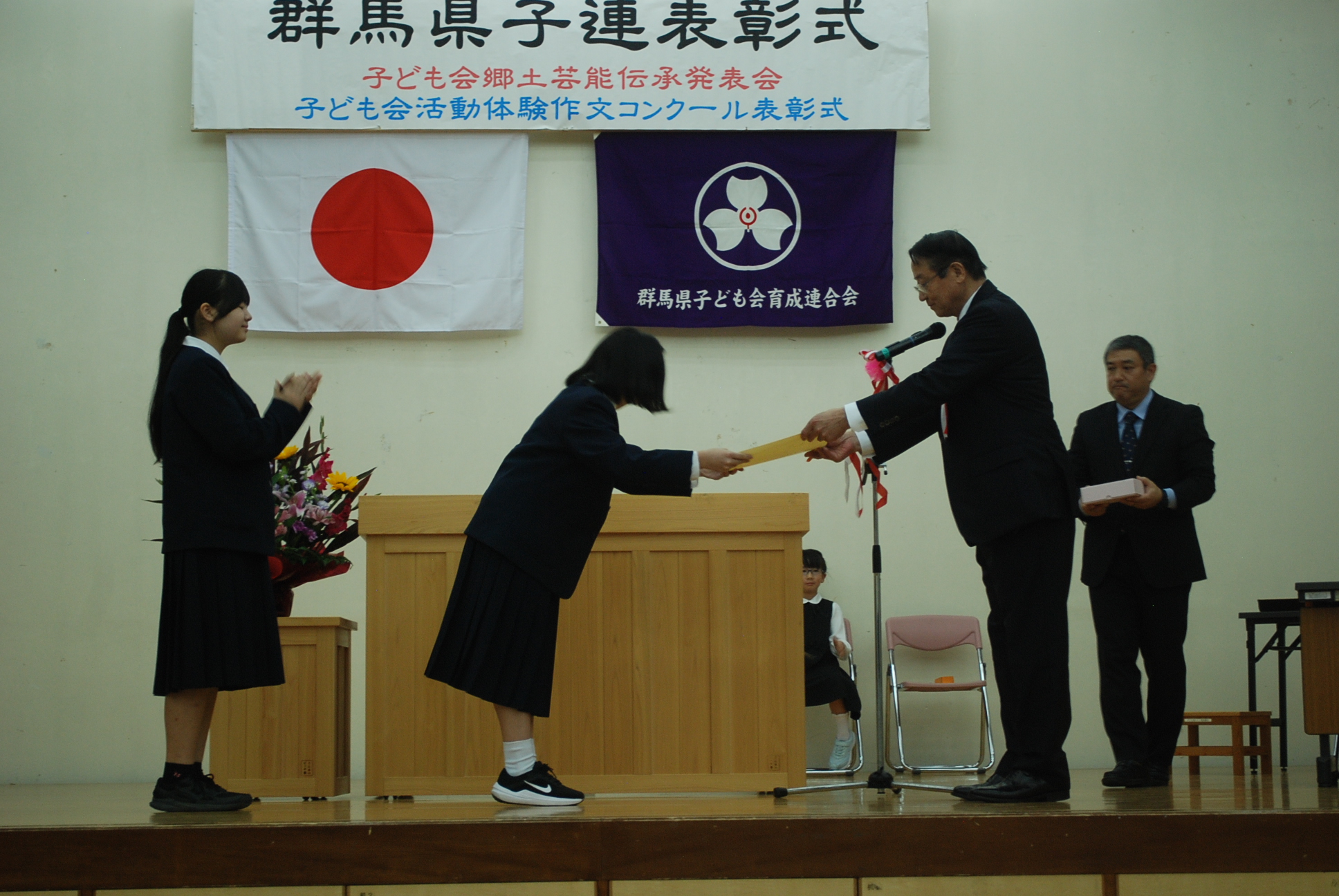 令和7年11月8日(土)に群馬県青少年会館(前橋市荒牧町)にて、群馬県教育委員会事務局都丸生涯学習課長様、(公財)群馬県青少年育成事業団大川理事長様、群馬県青少年会館金子館長様にご出席いただき、「群馬県子連会長表彰式・子ども会郷土芸能伝承発表・子ども会活動体験作文コンクール表彰・発表」を開催しました。これまで永年にわたり活動を続けてこられた子ども会、育成者・指導者、育成組織の表彰、子ども会活動体験作文コンクールの優秀賞受賞者の表彰を行いました。また、表彰に先立ち前橋市の清野町野良犬獅子舞保存会(清野町子ども会)により永年地域に受け継がれてきている獅子舞を披露していただきました。