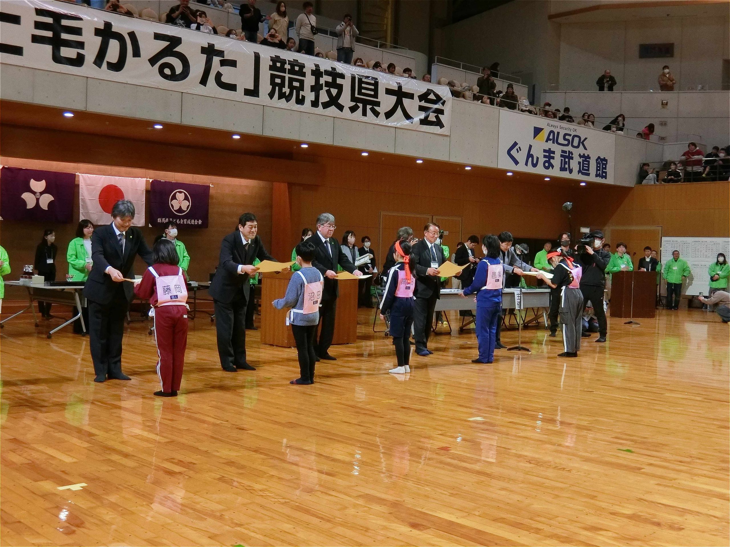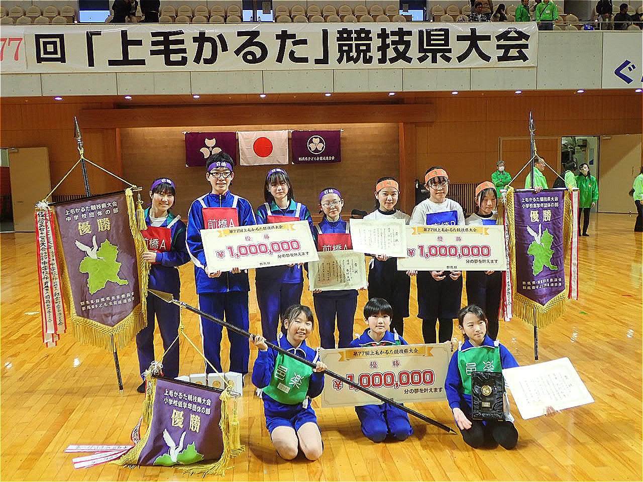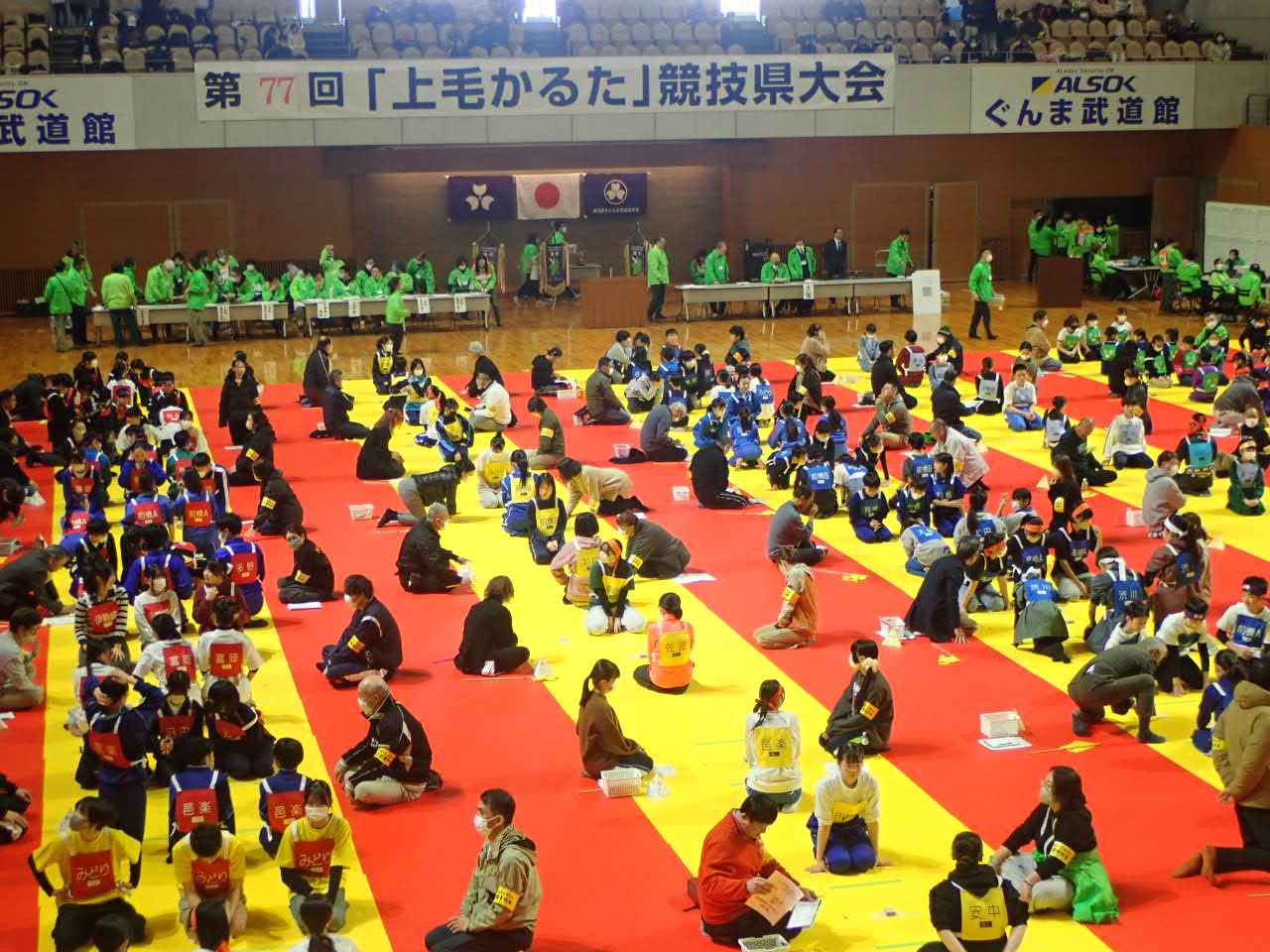 令和8年2月15日(日)に第77回上毛かるた競技県大会が前橋市関根町のALSOKぐんま武道館にて開催されました。県内の予選を勝ち抜いた代表選手が優勝を目指して正々堂々と試合を行いました。