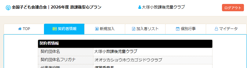 ⇒「団体」・・・加入者登録を所属クラブ(教室)毎に加入者の把握ができます。