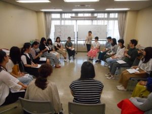 | 出された質問について自分の意見をメンバーに紹介しあう実習です。 |
