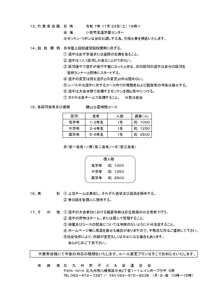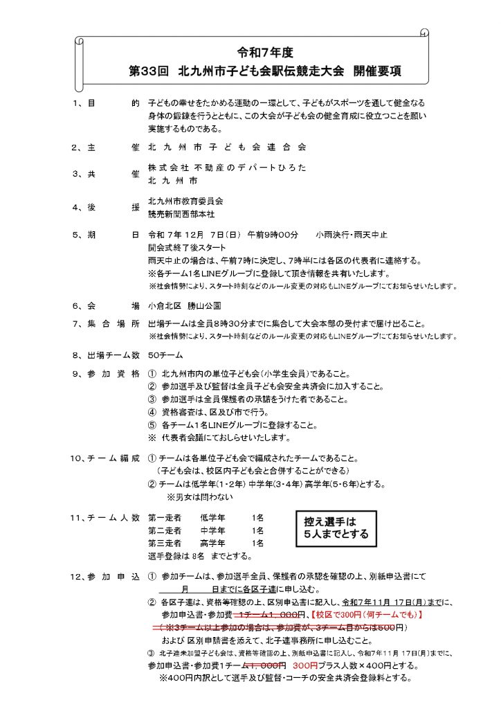 令和7年度 第33回北九州市子ども会駅伝競走大会 開催要項