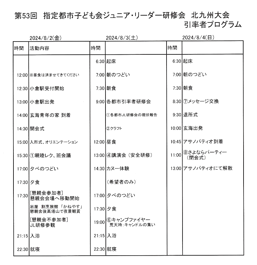 第53回指定都市子ども会ジュニア・リーダー研修会北九州大会報告書
