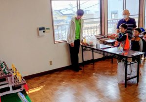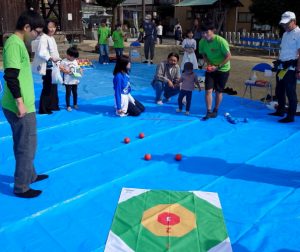 今回は初めて自治会と共同でのイベント開催でした。また、始めて市子協のジュニア・リーダー派遣を申請し、9人のジュニア・リーダー(JL)に来て頂きました。異世代の交流が少ない中、JLのお兄さんお姉さんや高齢者の方たちと同じ空間で同じ体験をして、とても貴重な時間となりました。 イベントコーナーは公民館でeスポーツなど、神社境内でディスゲッターなど計6カ所設定しました。各コーナーには景品もたくさんあり、子ども達は接待かのような沢山のお土産を手にして大満足でした。山本会長からの竹とんぼのお土産も大好評でした。