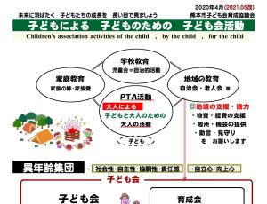 子どもに対する教育活動は、学校教育や家庭教育、PTA活動、地域の教育などいろいろの教育活動があります。それらは主に大人が主体の活動です。そしてそれらの意義は広く知られています。一方、子ども会活動は子どもが主体の活動です。それは地域における異年齢集団の素晴らしい活動ですがその意義が見落とされがちです。令和2(2020)年7月に参考資料を掲載しましたが、皆様にも広く、理解して頂きたく再度掲載します。