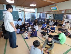令和7年12月20日(土)15:00~17:00 室園公民館で、「クリスマス会」が行われ、要請により、ジュニア・リーダーを派遣しました。いろいろと忙しい中に、高2女子2人、高1男子1人、中3女子1人、中1男子1人、計5人が参加しました。中1男子は清水小学校出身なので子ども会のメンバーとは互いによく知っている仲でした。遠くから来る3人は、中央公民館に集合して、子ども会役員の方に車で迎えに来て頂き大変助かりました。