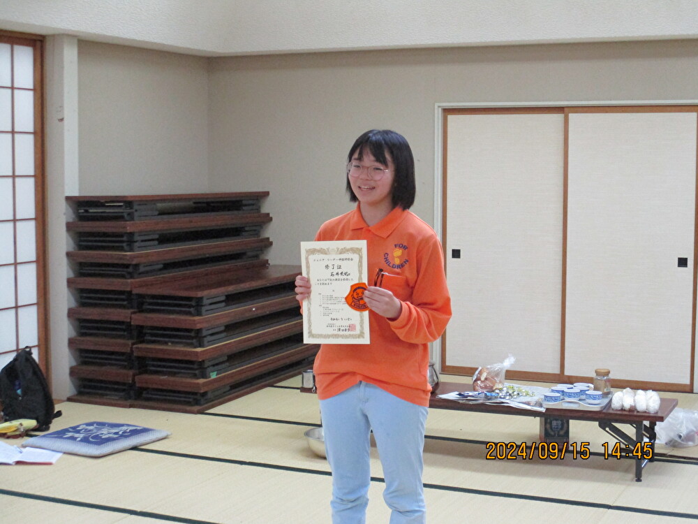 更なる活躍を期待しています。今回の参加者の中にも、あと少しで中級認定が取れる人がいました。今後も県内各地域のジュニア・リーダーからたくさん参加してもらい、地元の子ども会活動を支えるジュニア・リーダーとして活躍していただきたいと期待しています。