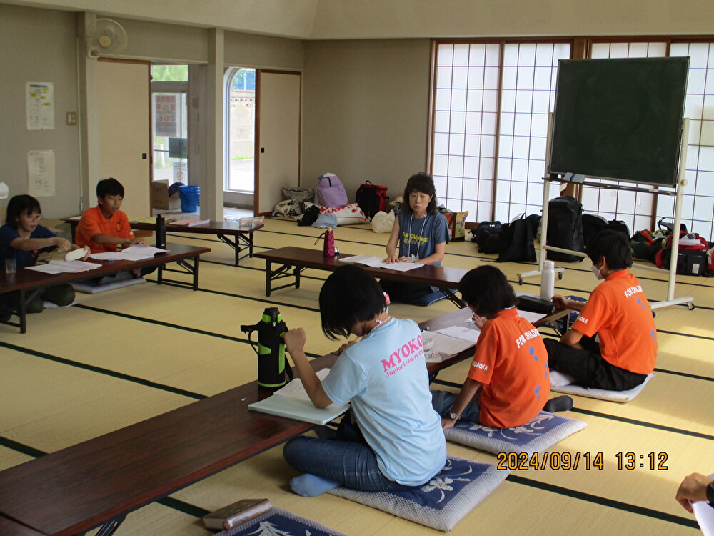令和6年9月14日(土)~15日(日)、日本海に面した高台にある、寺泊の長岡市青少年研修センターで、今年度2回目のジュニア・リーダー及び指導者・育成者中級研修会が開催されました。