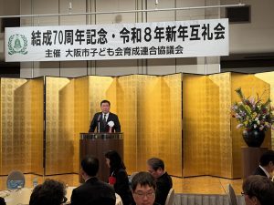 令和8年1月16日(金)KKRホテル大阪にて大阪市子ども会育成連合協議会結成70周年記念式典並びに令和8年新年互礼会を開催いたしました。 第一部の結成70周年記念式典では、子ども会活動にご尽力いただきました個人30名 団…