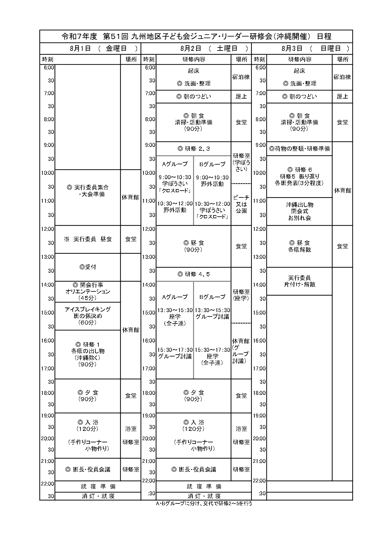 2025年8月1日~3日の日程で無事、九州地区のジュニアリーダー研修会が開催されました。