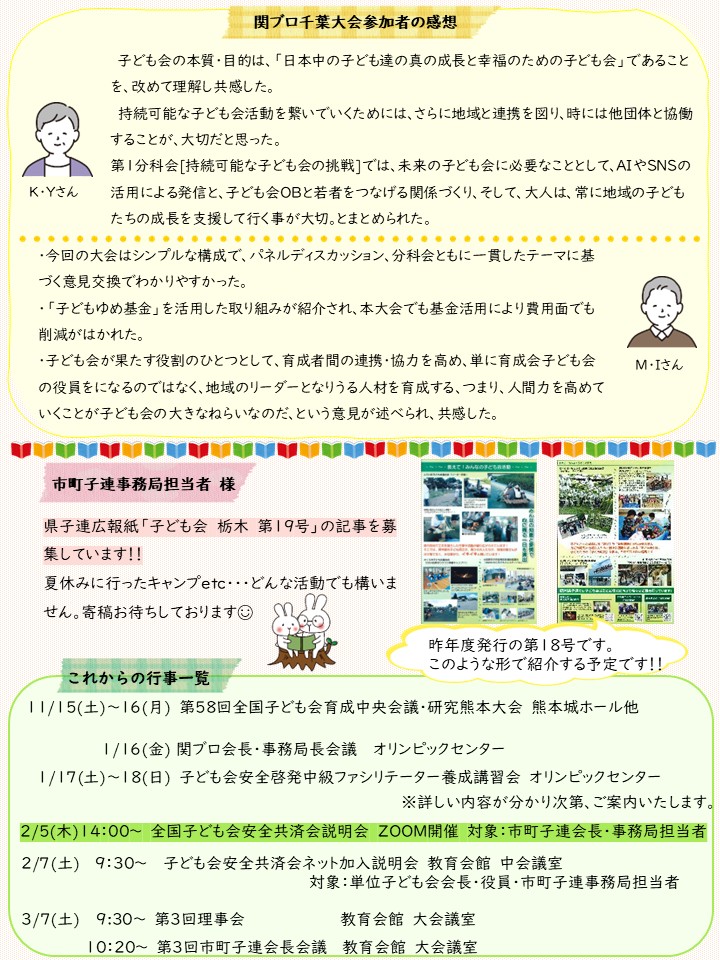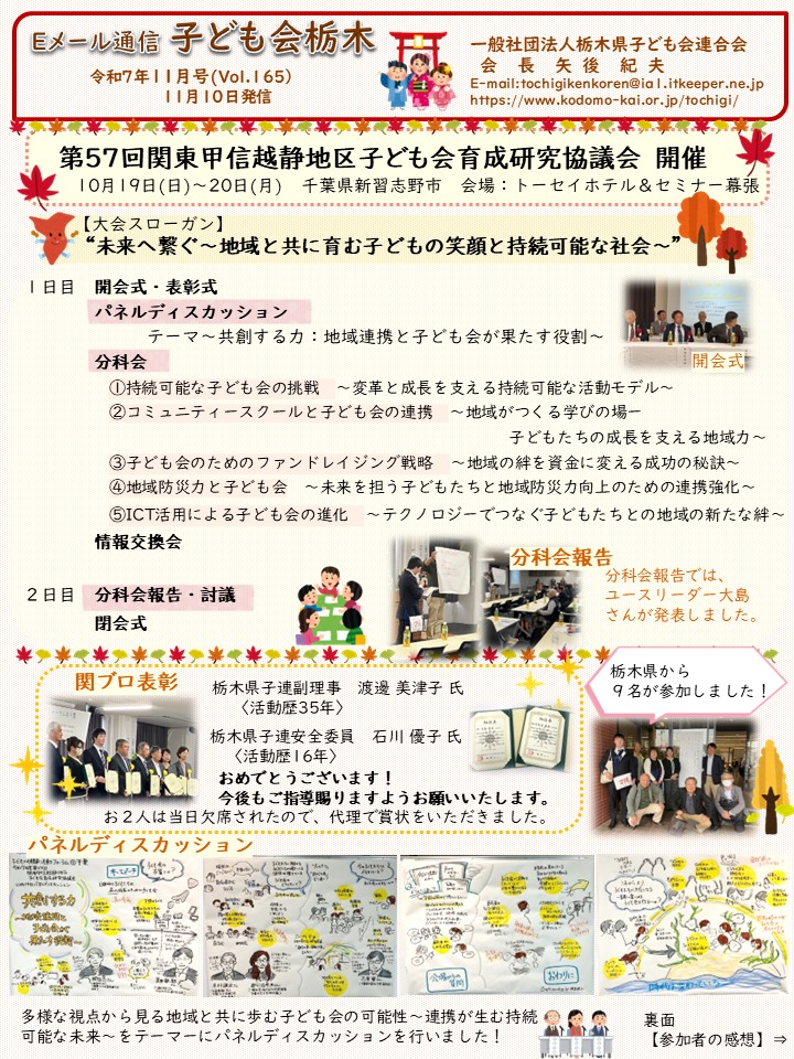 11月10日Eメール通信「子ども会栃木R7.11月号vol.165」を掲載しました。