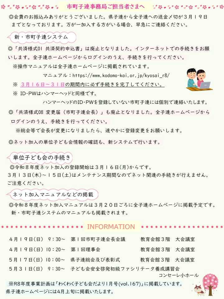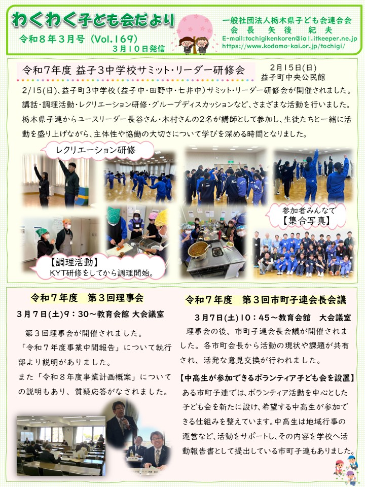 3月10日「わくわく子ども会だよりR8.3月号」を掲載しました。