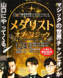 山口県が世界に誇るプロマジシャン高重翔さんとJONIOさんにによるマジックショーのご案内です