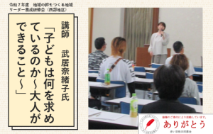 地域の絆をつくる地域リーダー養成研修会(西部地区企画)を開催します。 概要は次のとおり ・日時:11月8日(土)14:0