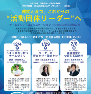 特定非営利活動法人 やまぐち県民ネット21 やまぐち県民活動支援センターからのお知らせです。 きらめきスキルアップセミナ